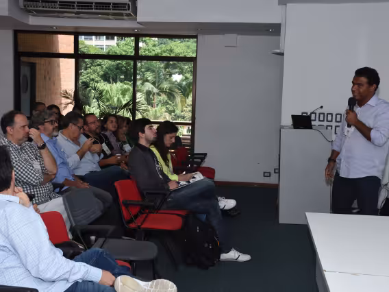 Apresentação do coordenador de Pós-Graduação em Implantodontia do Instituto de Odontologia da Pontifícia Universidade Católica (IOPUC), prof. Luciano Santos Oliveira, durante o evento.