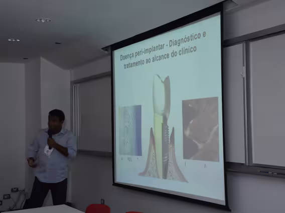 Palestra sobre a doença peri-implantar ministrada no evento.