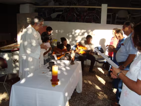 Missa ao Dia de São José Operário - 1 de maio - realizada dois dias depois, em frente às oficinas da Universidade.