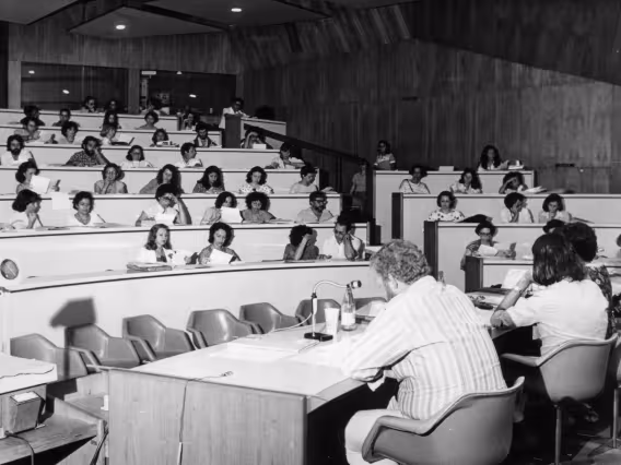 Código exclusivo cg0048_040 Coleção Acervo da Reitoria - fotos do armário de acrílico Data de criação 12/11/1981 Natureza do documento imagem Tipo de documento fotografia PB Descrição Seminário realizado no Salão de Vidro.