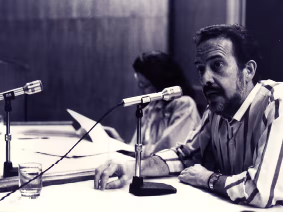 José Roberto Pastor, gerente de produtos da empresa Brahma, no segundo dia da II Semana de Propaganda e Marketing. Essa Semana foi uma iniciativa dos próprios alunos do Departamento de Comunicação e levou mais de 200 pessoas ao auditório do RDC em cada um de seus quatro dias de duração.