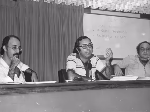 Guillermo O'Donnell, cientista político argentino, professor da Universidade de Buenos Aires, nas VI Jornadas Latino-americanas de Metodologia do Ensino do Direito. "Inicialmente programadas para acontecer na Universidade Cândido Mendes, as VI Jornadas acabaram ocorrendo na [PUC-Rio], sob a coordenação de Carlos Alberto Plastino. Entre os convidados estrangeiros figuravam Antoine Jeammaud e Michel Miaille, e, entre seus participantes, encontrava-se José Ribas Vieira." [http://bibliotecadigital.fgv.br/ojs/index.php/revdireitogv/article/view/35186/33990]
