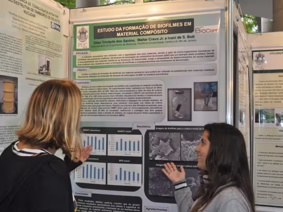 Apresentações dos Bolsistas de Iniciação Científica do CTC no PIBIC 2011.2. 'Estudo da Formação de Biofilmes em Material Compósito' - Ellen Trindade dos Santos; orientação dos professores Walter Cravo Jr. e Ivani de S. Bott