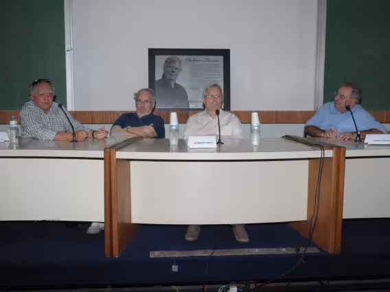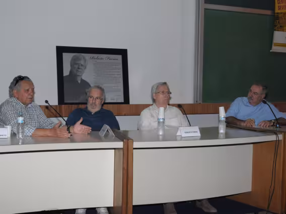 Professor Manuel Diegues Júnior recebe uma placa. A fotografia em questão ilustrou uma nota sobre seu falecimento no Jornal da PUC.