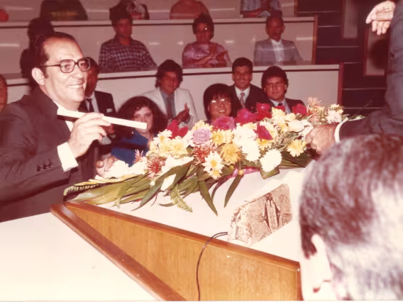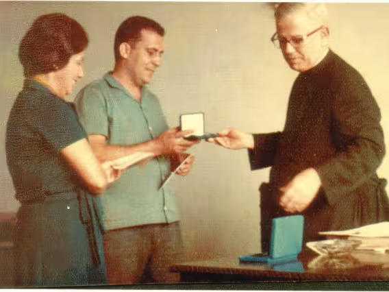 Funcionário reza ajoelhado em frente a imagem de Nossa Senhora Aparecida.