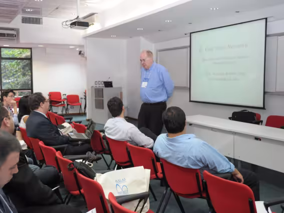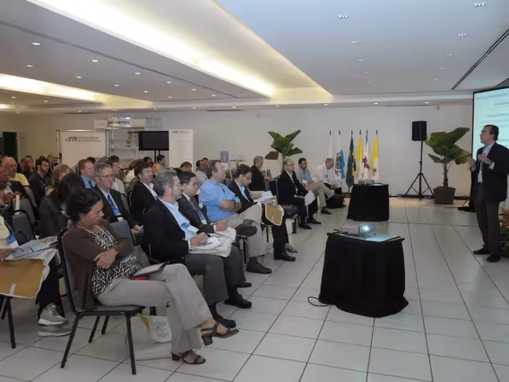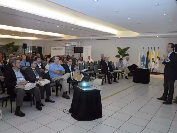 Plateia e palestrante na conferência.