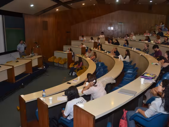 Possivelmente registro de Fernando Augusto, da divisão de marketing da Levi's, em palestra promovida pelo Departamento de Artes da PUC-Rio.