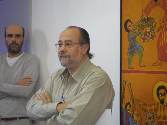 O Reitor Pe. Josafá S.J. cumprimenta a profa. Margarida de Souza Neves (HIS), uma das homenageadas.