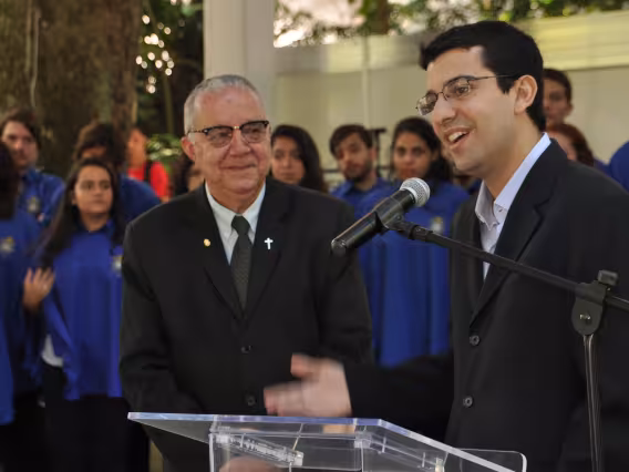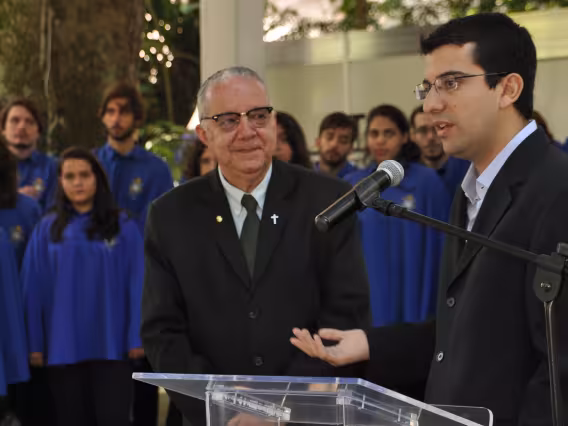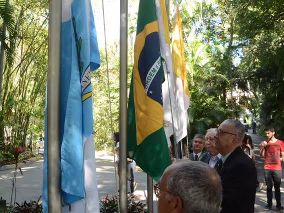 Cerimônia de abertura da XVIII Mostra PUC com hasteamento das bandeiras.