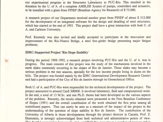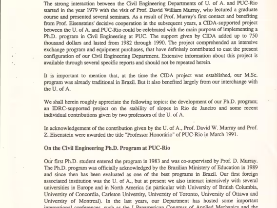 University of Alberta to the Development of the Civil Engineering Ph.D Program at PUC-Rio. Histórico da colaboração entre a PUC-Rio e a University of Alberta.