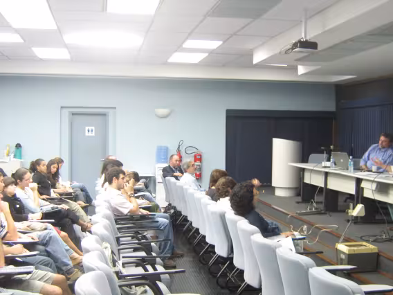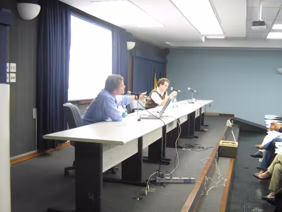 A diretora do Departamento de Educação, profa. Hedy Vanconcellos, apresenta o departamento no Seminário Interno do CTCH, realizado na Casa da Gávea nos dias 27 e 28 de setembro de 1979. O seminário promoveu a troca de informações e a integração entre os departamentos constitutivos do CTCH e seus respectivos diretores para a elaboração de um Plano Diretor da PUC-Rio.