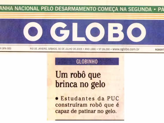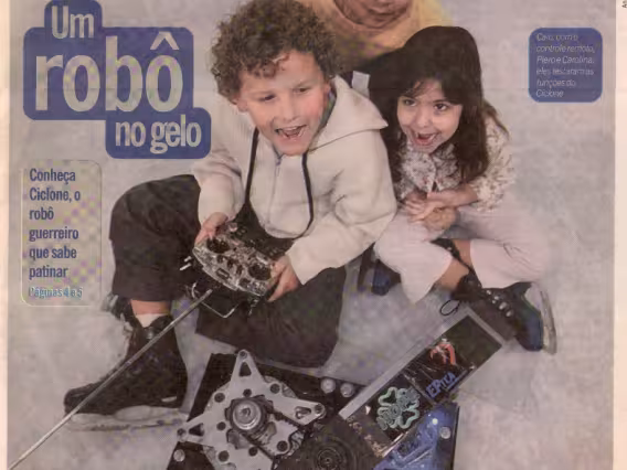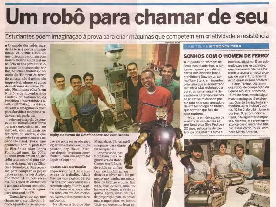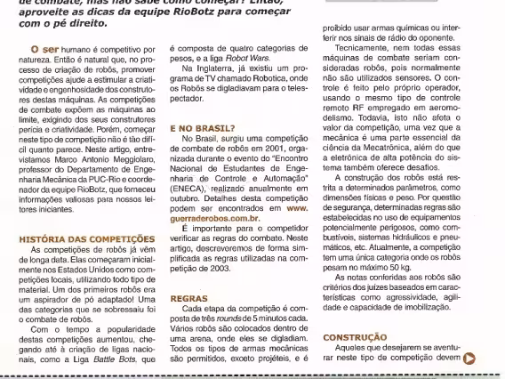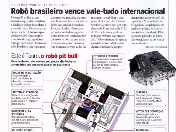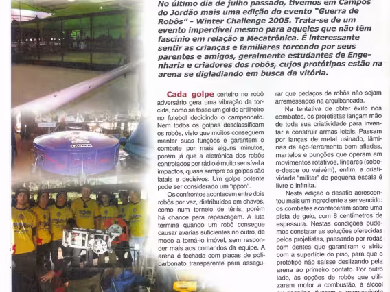 Artigo da Revista Mecatrônica Fácil, "Gladiadores mecatrônicos em Itajubá". Foto da equipe da PUC-Rio.
