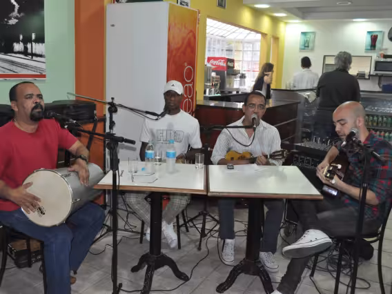 Coquetel e apresentação musical do grupo Roda de Samba da Pedra do Sal no encerramento do 'Seminário de Reflexão e Memória da Cultura Afrobrasileira', realizado em novembro de 2011 na PUC-Rio.