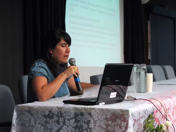 Mesa com conferencista no I Seminário Latino-Americano de Geografia e Gênero: Espaço, Gênero e Poder no auditório Padre Anchieta, organizado pelo Departamento de Geografia da PUC-Rio.
