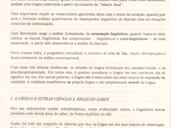Continuação do texto das profas. Marilda Averburg e Rosa Marina Mayer do Departamento de Letras sobre o o papel da linguistica dentre as demais ciências humanas.