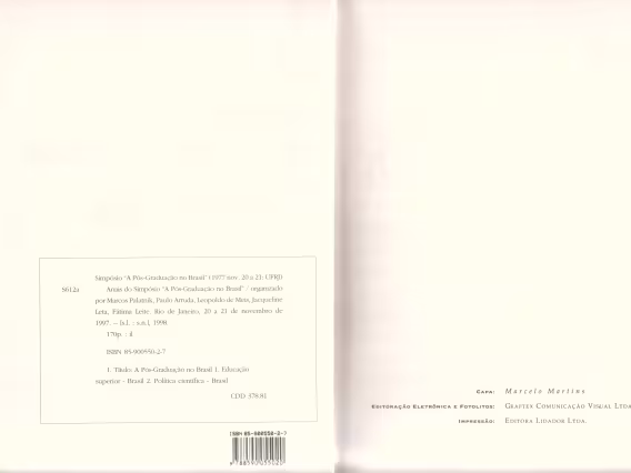 Sumário da publicação sobre o Smpósio A Pós-graduação no Brasil, realizado em 1977.