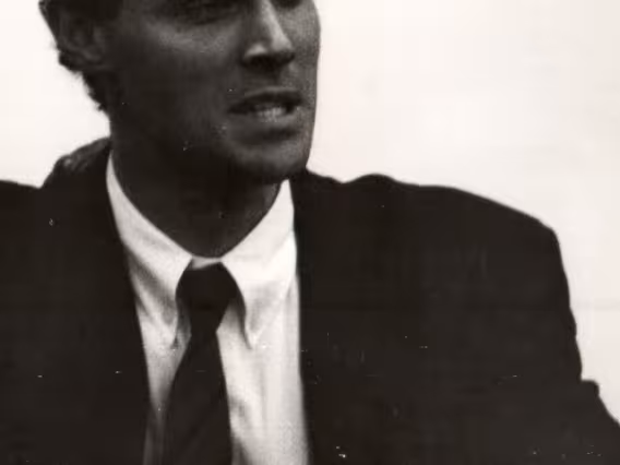 Luiz Cláudio, diretor da PC Software e Consultoria e ex-aluno da PUC-Rio, na cerimônia de doação de 800 cópias de softwares da empresa para a Universidade: o ABC, para edição de texto; SAMBA, uma planilha; e o banco de dados D-MAX. O RDC foi o responsável pelo suporte e treinamento.