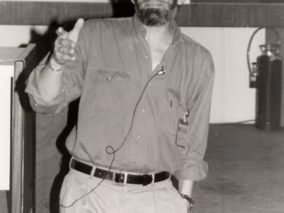 Professor Daniel Berry, do Instituto de Tecnologia de Israel‎ (Technion), ministra palestra no VII Simpósio Brasileiro de Engenharia de Software (SBES). Durante três dias, a PUC-Rio recebeu quase 400 participantes do simpósio que, à época, era considerado o maior encontro da área no Brasil promovido pela Sociedade Brasileira de Computação (SBC).