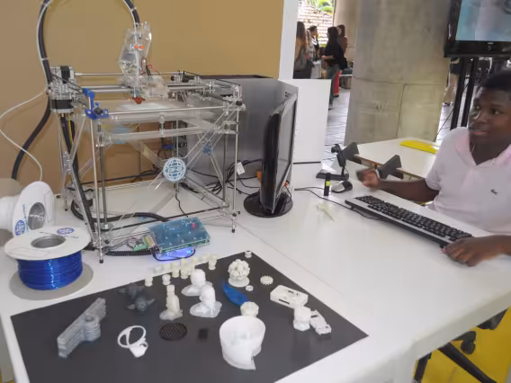 Aluno opera software que produz objetos em formato 3D durante a Semana de Design da PUC-Rio.