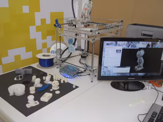 Objetos em formato 3D expostos na ala Frings durante a Semana de Design da PUC-Rio.