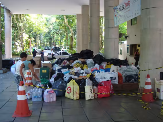 Mulheres não identificadas participam da feira de trocas de mercadorias e produtos para a comunidade PUC-Rio.