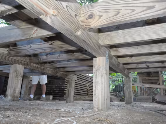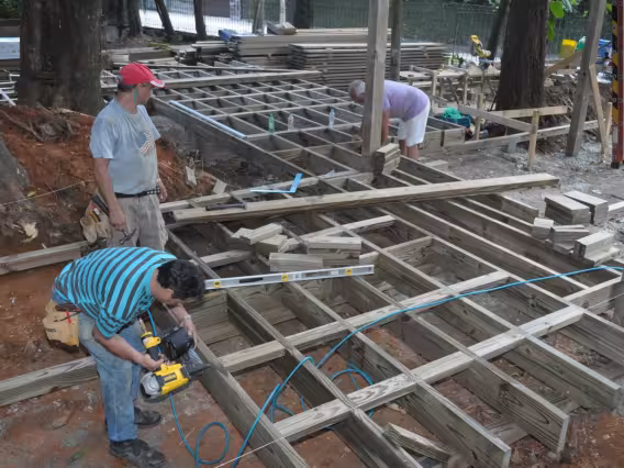Os bolsistas do Núcleo de Memória, Eduardo Gonçalves e Priscila de Oliveira, nas obras da Casa Modelo.