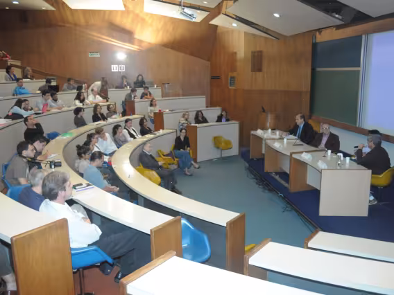 A PUC-Rio foi designada para celebrar o Dia Mundial do Habitat de 2011 no Rio de Janeiro. Na imagem, Alain Grimard, diretor da ONU HABITAT na América Latina e Caribe, fala algumas palavras na mesa de debate Cidades e Mudanças Climáticas, parte da Celebração Global que compunha evento.