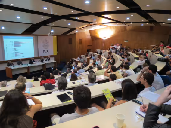 Plateia e a mesa com as autoridades durante a aula magna.