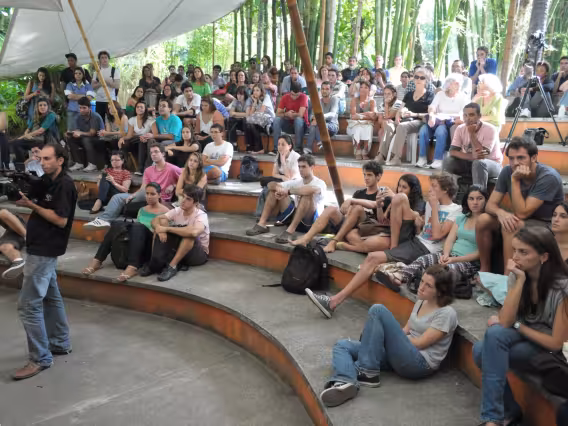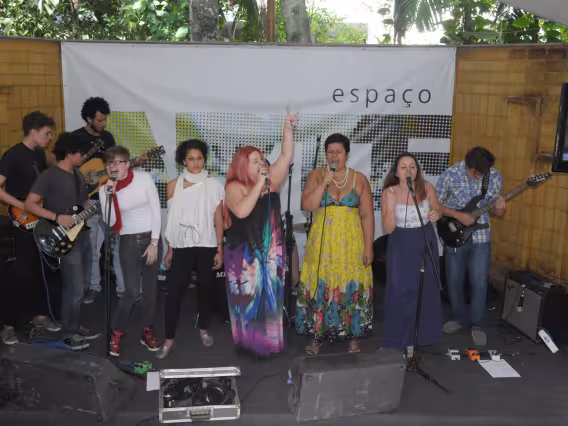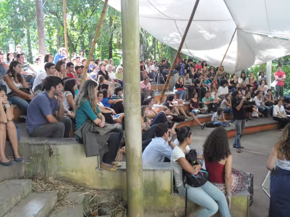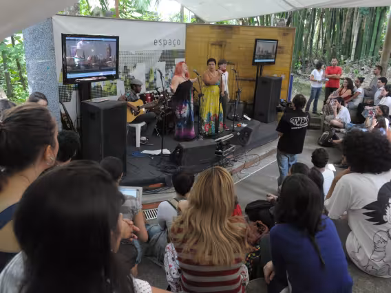 Código exclusivo cg0113_008 Coleção Silêncio Cantado – A história da ditadura nas canções de protesto Data de criação 10/05/2012 Natureza do documento imagem Tipo de documento fotografia cor Descrição Palco e plateia do evento.