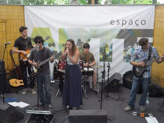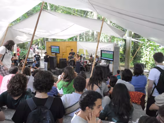 Código exclusivo cg0113_005 Coleção Silêncio Cantado – A história da ditadura nas canções de protesto Data de criação 10/05/2012 Natureza do documento imagem Tipo de documento fotografia cor Descrição Palco e plateia do evento.