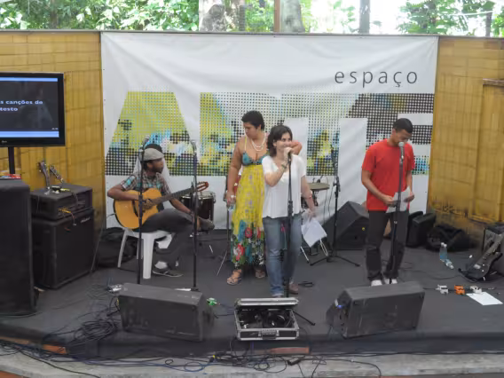 Código exclusivo cg0113_004 Coleção Silêncio Cantado – A história da ditadura nas canções de protesto Data de criação 10/05/2012 Natureza do documento imagem Tipo de documento fotografia cor Descrição Palco e plateia do evento.